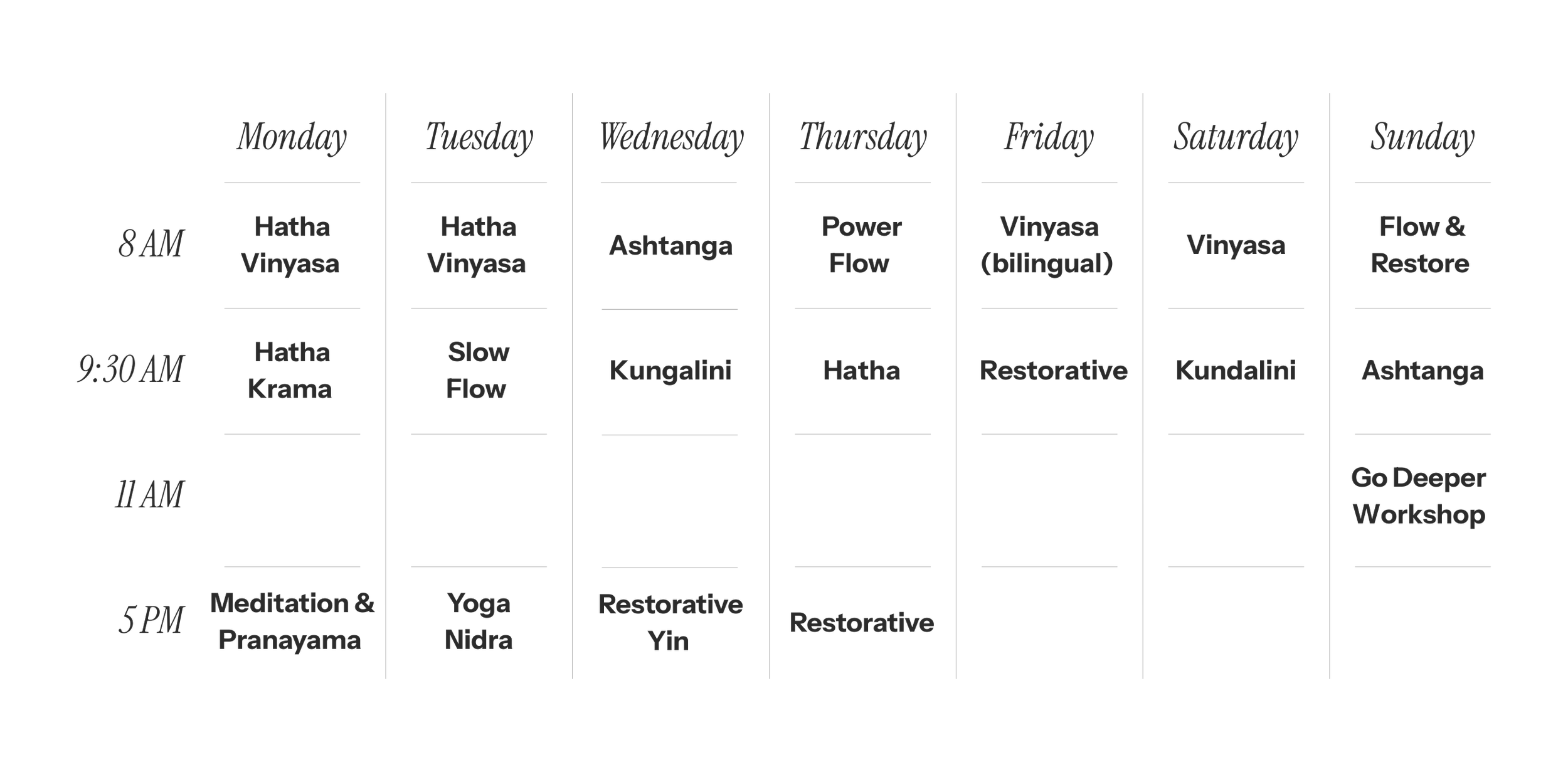 Weekly Yoga Calendar